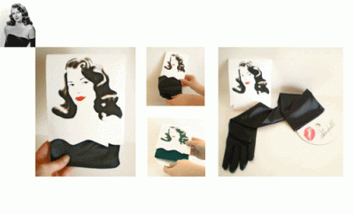 Miriam propuso presentar el disco dentro de la misma Rita Hayworth y protegerlo con su famoso guante. Se puede observar la caja de cartón con un troquel que se enfunda sobre el guante y a su vez conforma la figura de Rita.