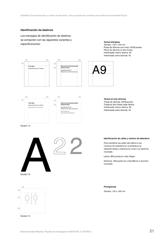 Esta publicación plantea un caso práctico de estructura, redacción y presentación visual de contenidos, para elaborar la sección de Señalética Corporativa de un Manual de Identidad Visual. Los contenidos se desglosan en tres partes. En una primera parte se expone la normativa dedicada a los elementos básicos (tipografía, color y pictogramas) y al sistema dimensional del conjunto de señales. La segunda parte presenta los apartados dedicados a los tipos de paneles asociados a la gráfica núcleo, así como a la dirección e identificación de los servicios y destinos demandados. La tercera parte se centra en la señalización de la biblioteca, detalles de matrices y bibliografía consultada.