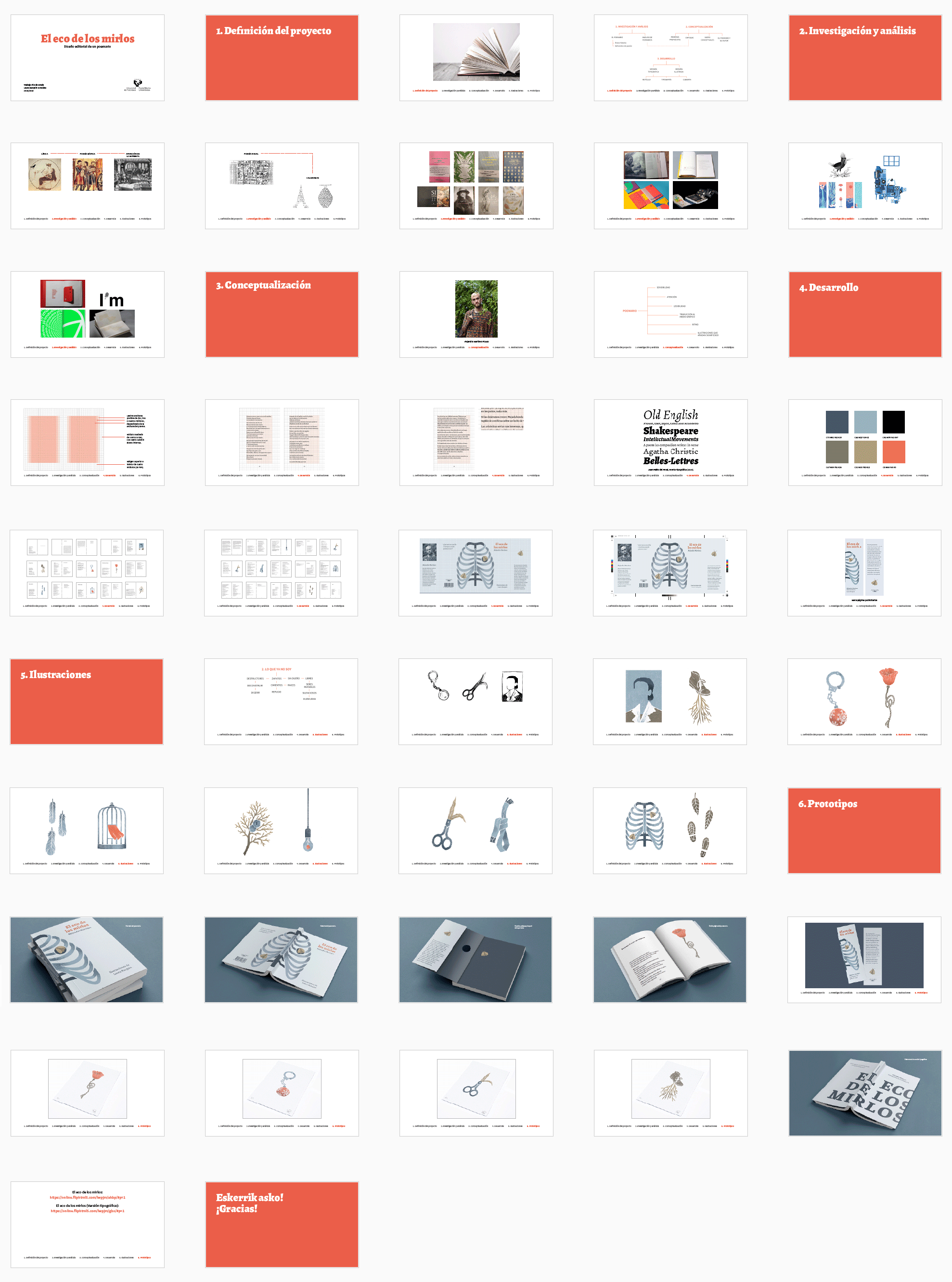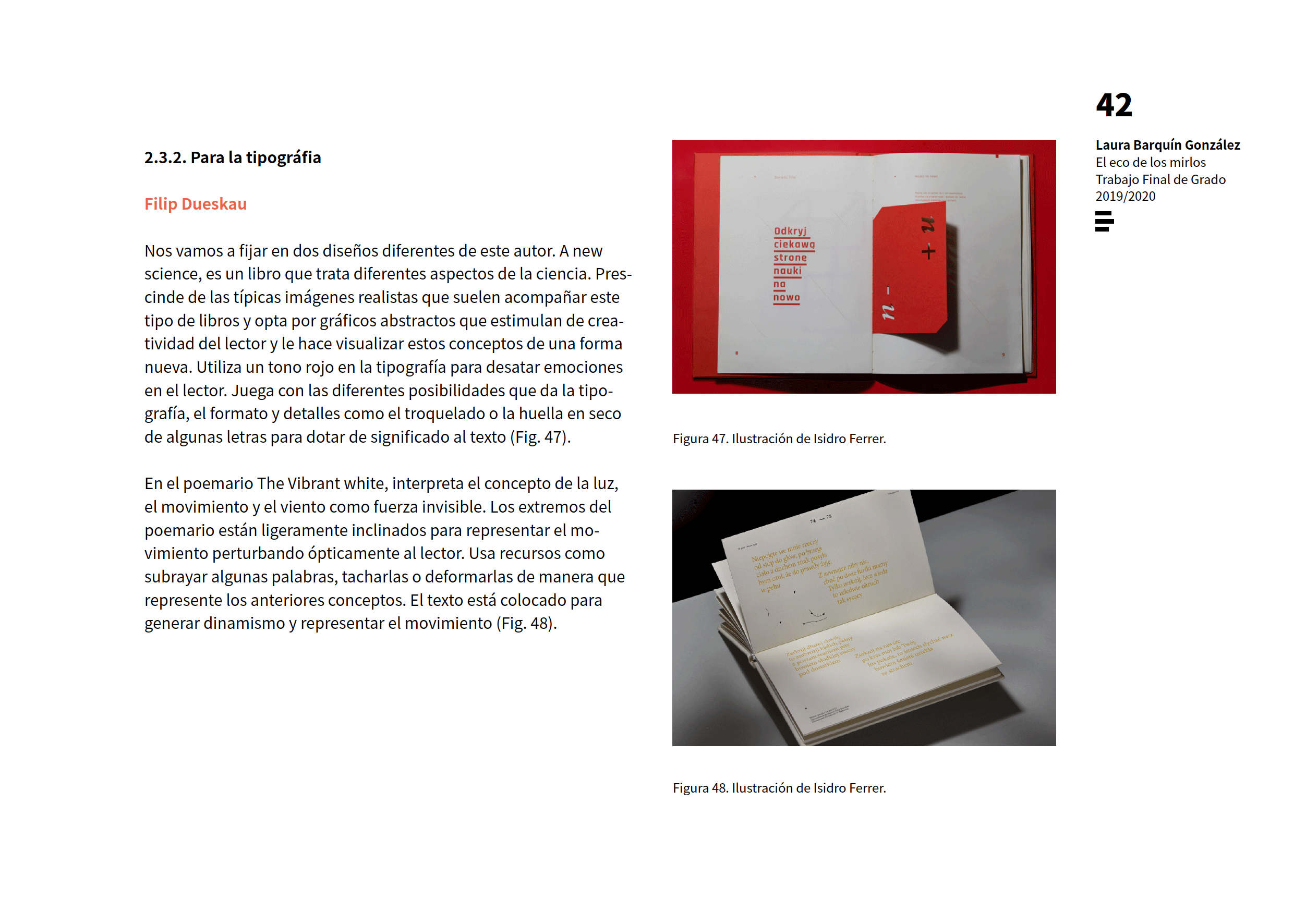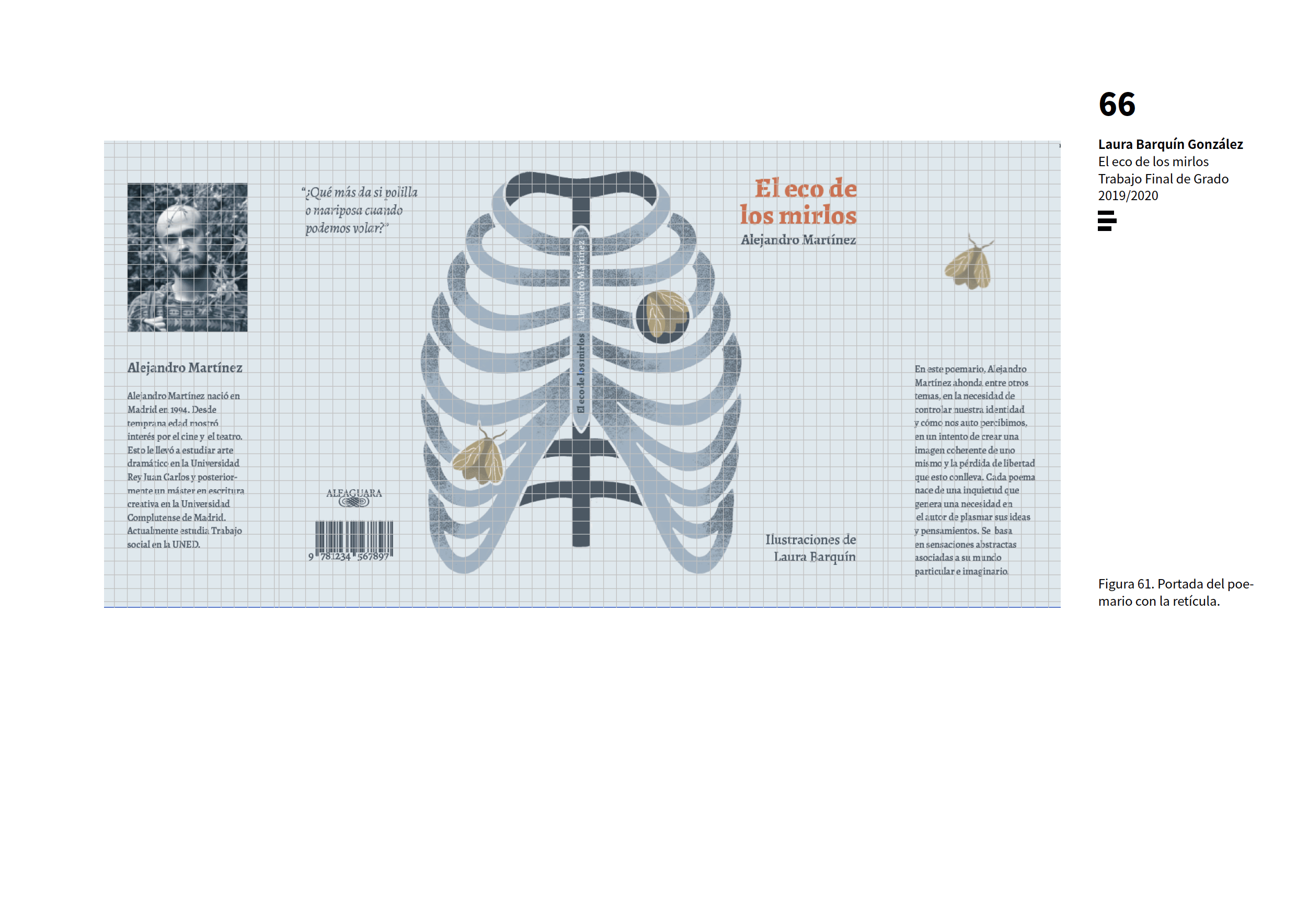 Laura Barquín ha realizado un proyecto enmarcado en el área de Diseño editorial, proponiendo el concepto global para el diseño, la cubierta y la maquetación de un libro de poemas del autor Alejandro Martínez. Este Proyecto de Fin de Grado ha sido todo un reto y un verdadero compromiso de trabajo de la alumna; hemos aprendido mucho las dos; aunque leo poesía, para mi como tutora ha sido también una oportunidad de aprendizaje sobre un tema que apenas había abordado desde la práctica profesional.