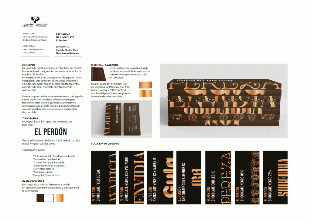 El proyecto consiste en proponer el nombre y el sistema de packaging para una nueva marca del sector del chocolate.